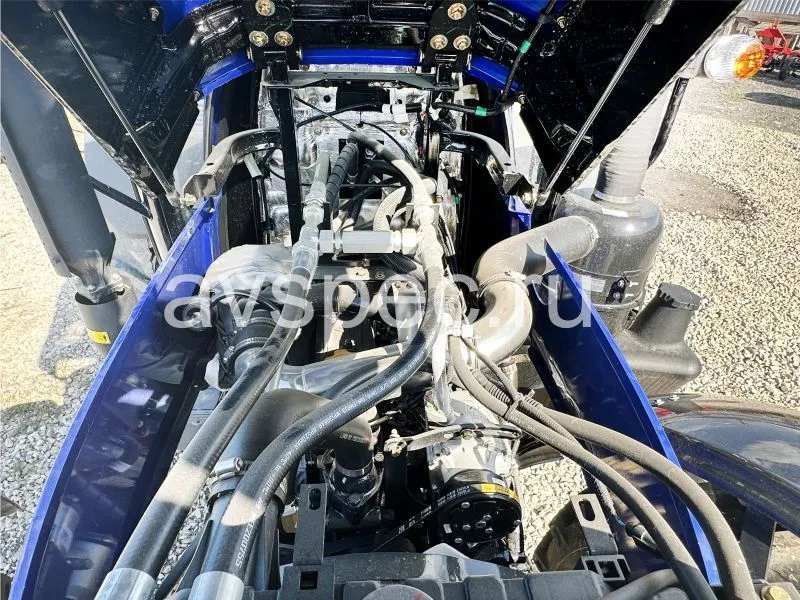 Машина оснащена двигателем мощностью 82,5 л.с. Для открытия капота используется амортизаторная газовая система. Очистка осуществляется фильтрами двух типов – тонкой и грубой очистки. Элемент воздухоочистителя – влажного типа. Как и все модели двигателей, произведенных в Южной Корее, к нему есть доступ со всех сторон. Широкий обзор кабины обеспечивает комфортную работу агронома. Ещё один плюс к комфорту – это шумоизоляция и защита от вибрации. Расположение коробки передач не мешает водителю трактора (раньше КПП располагалась между креслом и рулевой колонкой).